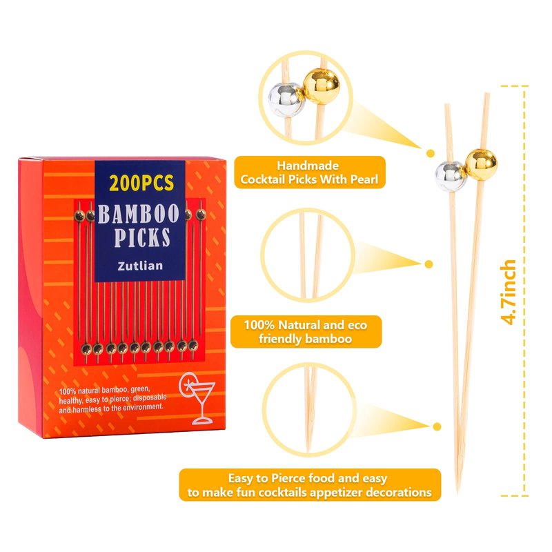 - Eco-Friendly Material: Zutlian gold cocktail picks for appetizers, silver cocktail picks, gold and silver toothpicks for appetizers Christmas drink drink picks cocktail cocktail picks fancy for bamboo appetizer drink skewers cocktail skewers are made of 100% natural bamboo for appetizer picks, cocktail picks for drinks easy to use, elegantly display your delicacies.