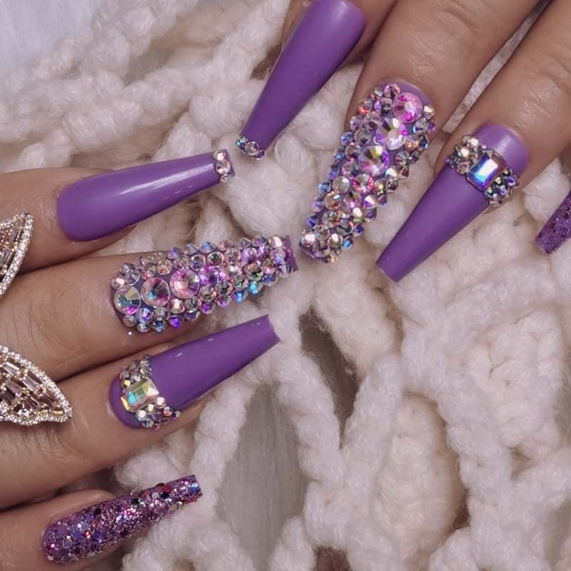 - 1.purple Fake nails use high quality ABS Environmentally friendly materials production,to the body or nail non-toxic。at home Finish with a DIY manicure in minutes!