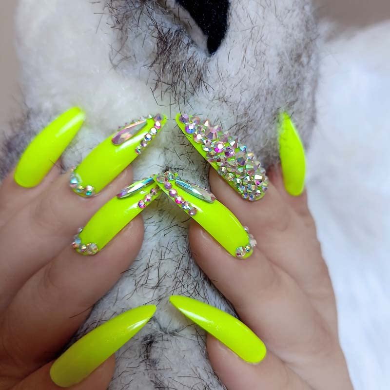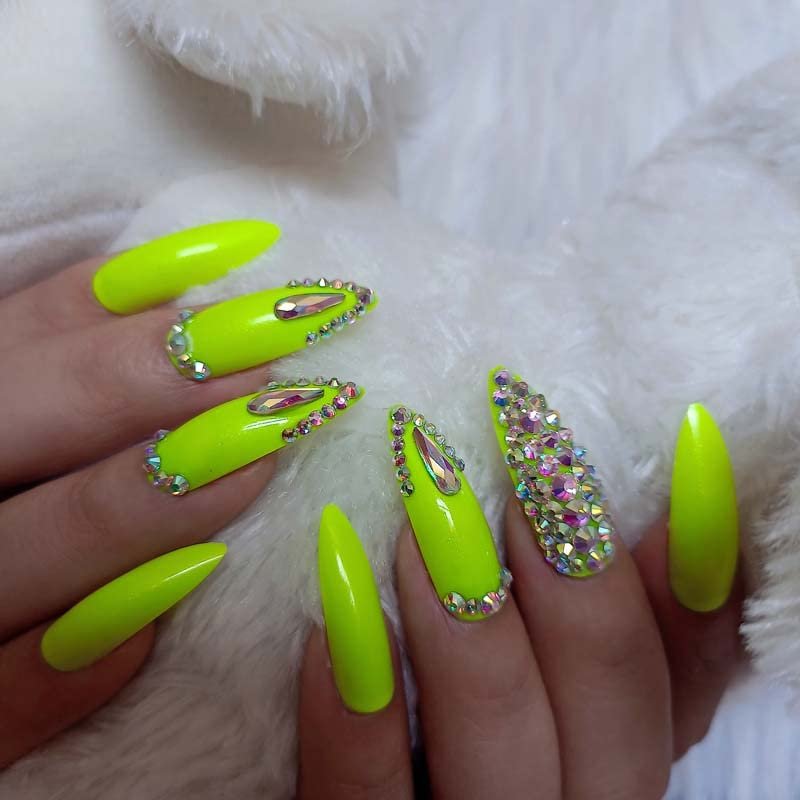 ZYBUXY light green press on nails luxury gem Crystal diamond False Nails long Stiletto Stick Fake Nails 24pcs wedding nails for bride
