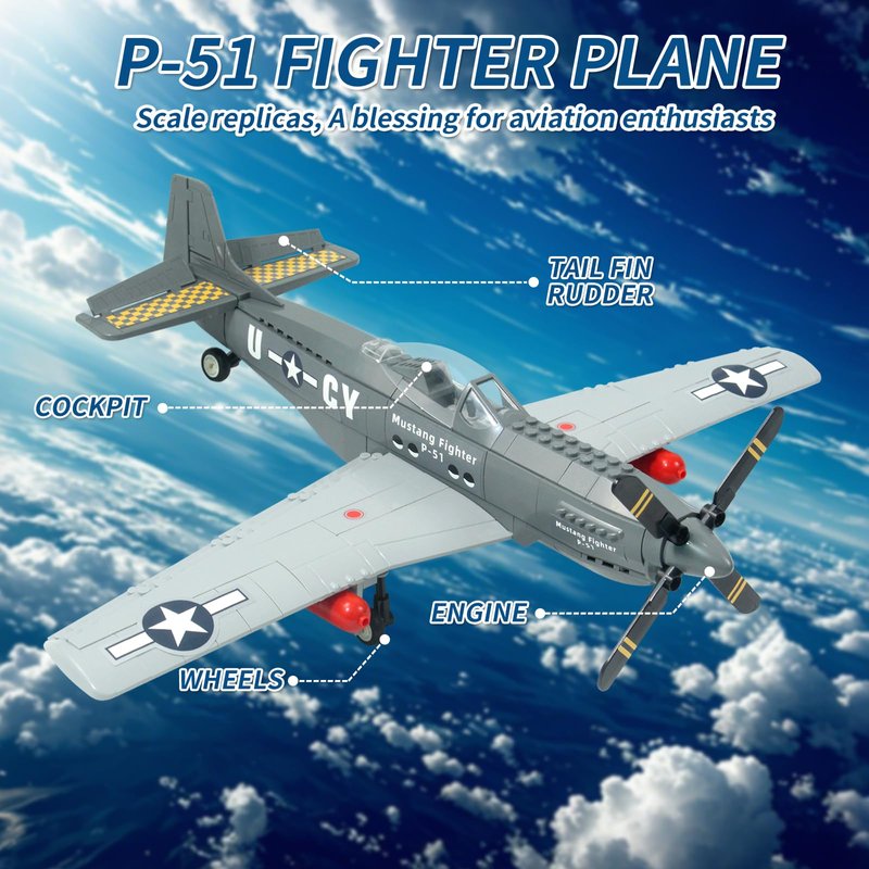 - 【Perfect Replica】 The ZYLEGEN P-51 Fighter Aircraft building block set perfectly replicates the details of the P-51 Mustang, allowing you to explore the world of aviation and create a unique military experience. Ideal for enthusiasts who love exploring and building iconic aircraft