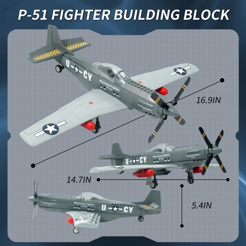 - 【High-Quality Materials】 This set is made from premium ABS plastic, ensuring high compatibility of the blocks. The P-51 fighter building block measures 9.6 cm in height, 48.3 cm in length, and 22.7 cm in width, making it easy to assemble for both adults and children