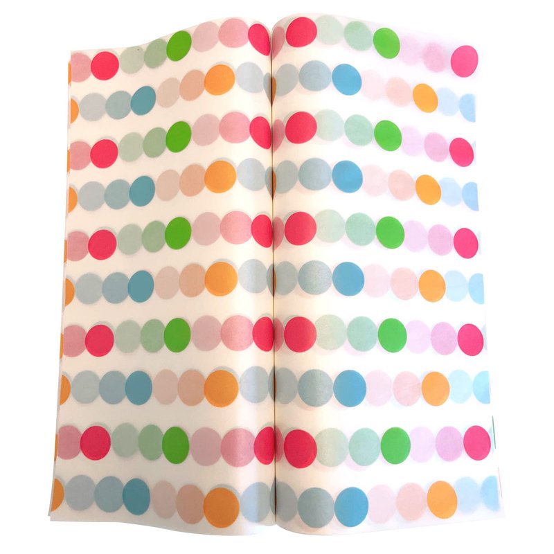 - Size and Feature: Colorful dot deli wax paper sheet is available in 22 x 25 cm (8.6 x 9.8 inches) and our printed parchment is non-sticky, waterproof and grease resistant. Each package includes 150 sheet food tissues for special occasions with four colors.