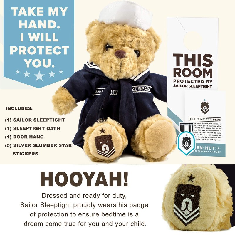 ZZZ Bears Military, Police and Fireman Teddy Bears Plush Toys to Honor, Protect and Cuddle at Bedtime (Navy Crackerjack Uniform)